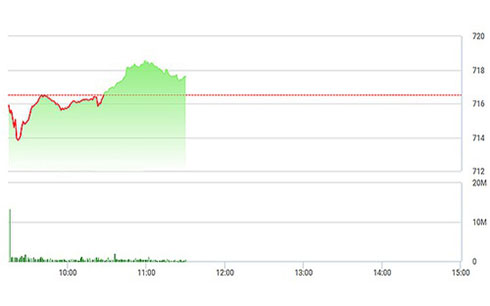 VN-Index chốt phiên sáng tăng nhẹ 0,15% hay 1,07 điểm. VN30-Index tăng 0,03%, thậm chí đã có lúc chớm đỏ ở nhịp giảm 30 phút cuối phiên. Tuy nhiên, kết phiên sáng cả hai chỉ số quan trọng nhất này vẫn duy trì được trong vùng tăng giá.