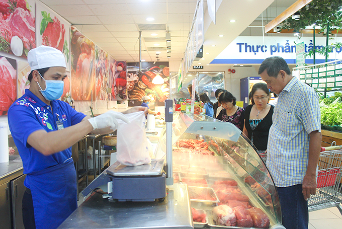 Người dân mua thực phẩm tại siêu thị Co.opmart Nha Trang. |