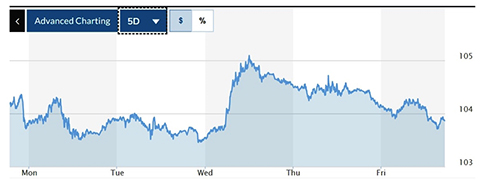 Biểu đồ biến động Chỉ số DXY trong tuần qua. |