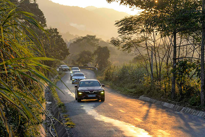 Chặng đầu tiên từ Hà Nội tới thành phố Hà Giang chưa phải là thử thách lớn cho những VinFaster. Mọi thành viên trong đoàn đều tỏ ra hào hứng với cơ hội thử tay lái trên 200 km đường đèo hiểm trở với những khúc cua và đèo dốc thách thức bậc nhất cả nước.