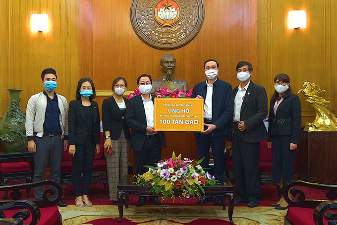 Chiều 9-4, tại trụ sở Ủy ban Trung ương Mặt trận Tổ quốc Việt Nam, Đại diện Tập đoàn Mường Thanh đã đến và bàn giao 100 tấn gạo cho công tác phòng, chống dịch COVID-19.