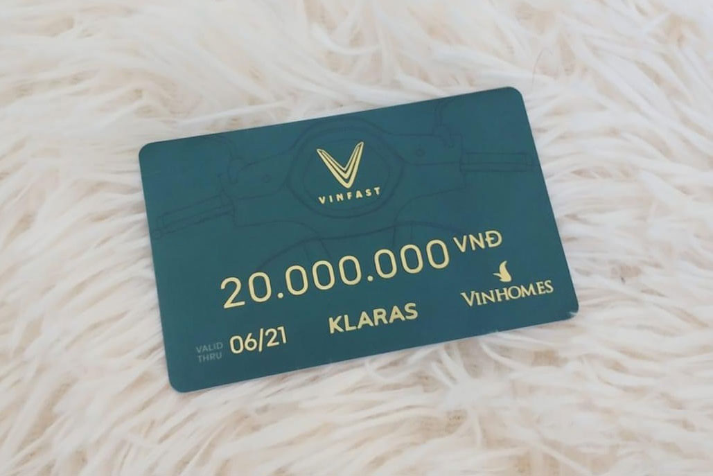 Từ đầu năm 2020, khách hàng mua nhà Vinhomes đều được tặng voucher để mua xe ô tô VinFast. Sau một thời gian triển khai và nhận được sự đón nhận nồng nhiệt của khách hàng, VinFast tiếp tục mở rộng chương trình, dành tặng cho khách nhận bàn giao nhà Vinhomes từ ngày 28/9 đến 31/12/2020 một voucher tri ân “Vì Việt Nam Xanh” trị giá 20 triệu đồng để mua xe máy điện KlaraS.