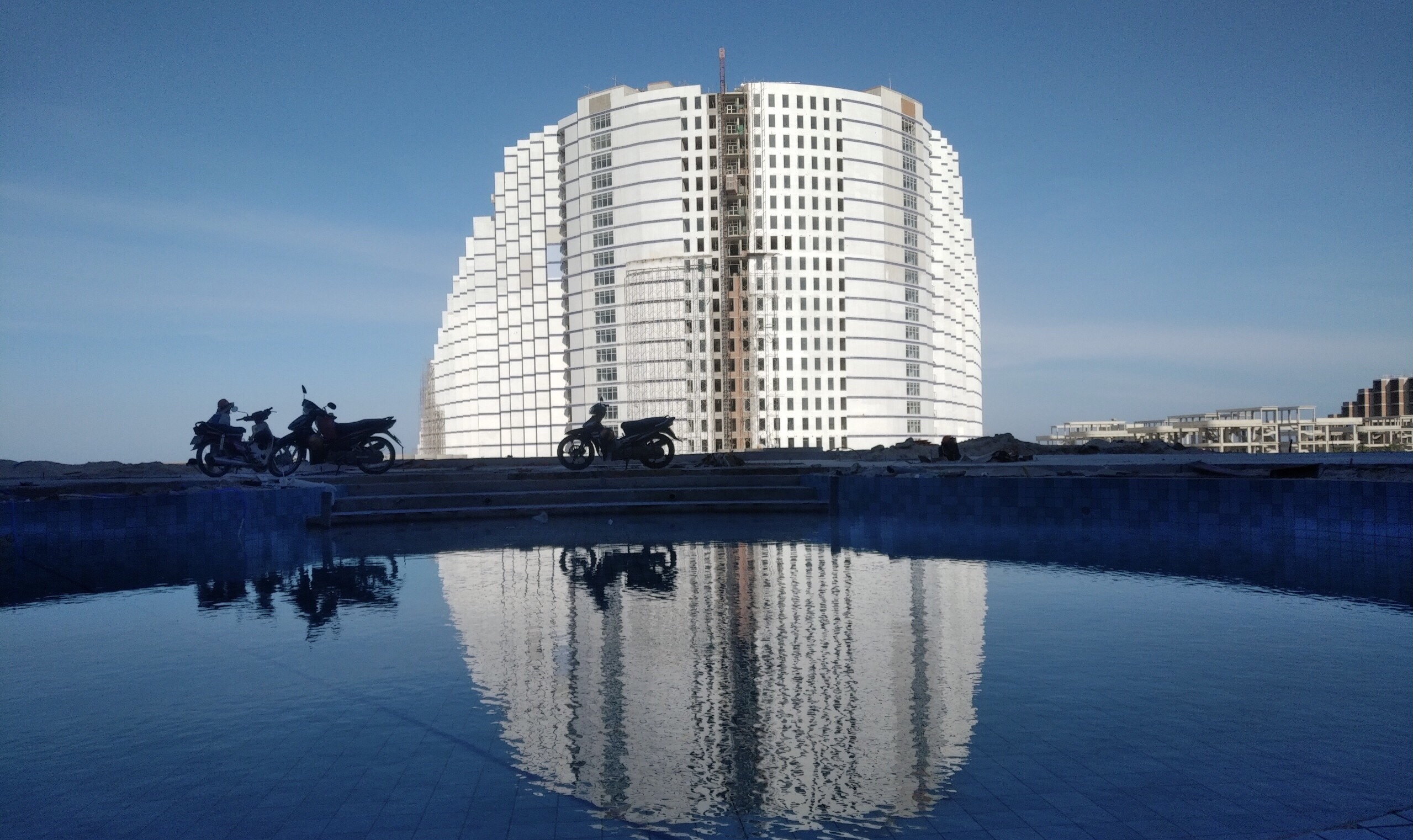 Công nhân gấp rút hoàn thiện mặt ngoài dự án