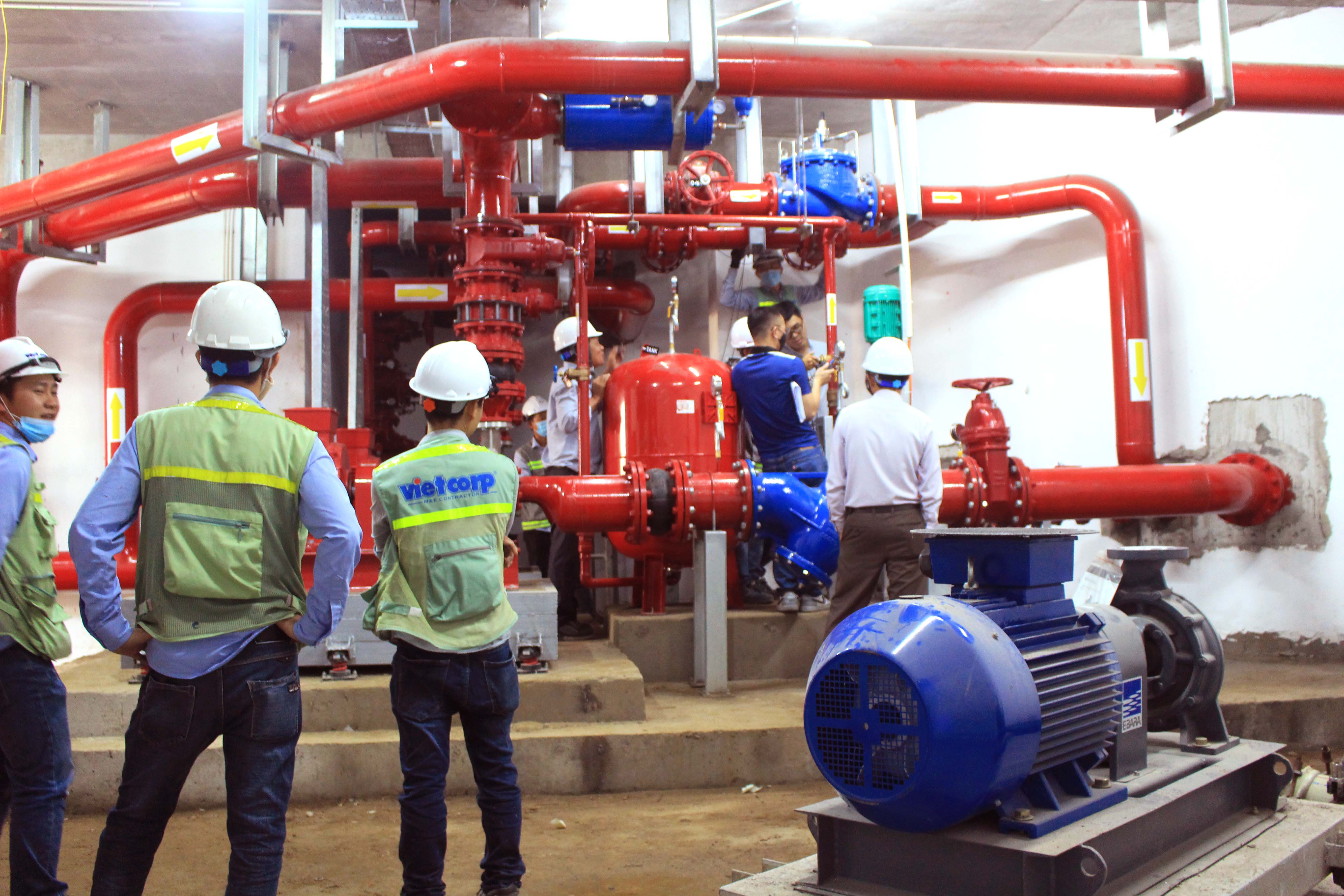 Kỹ sư VietCorp tham gia buổi làm việc kiểm định phương tiện phòng cháy chữa cháy