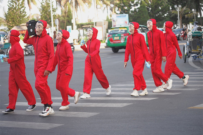 Trong đợt lễ 30/4 -1/5 vừa qua, du khách có mặt tại khu vực quảng trường 2/4 Nha Trang và trước tòa nhà Panorama vô cùng bất ngờ, phấn khích trước sự xuất hiện của “đội quân” áo đỏ cùng mặt nạ Salvador Dalí.