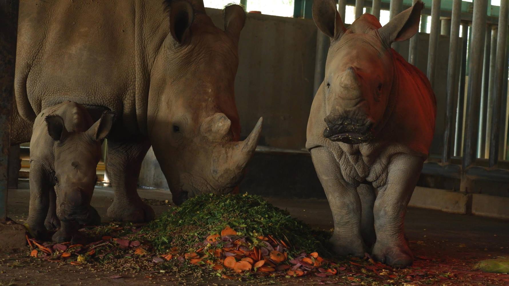 Sau khi “no nê” với sữa mẹ và những khẩu phần ăn đặc biệt, anh em tê giác với những cái tên ngộ nghĩnh: Cà phê – Hakuna Matata - Winnie – Ura – Sữa – Bibo – Bé Bảy nha nhẩn “ăn dặm” với vạt cỏ và giải trí tại các vũng bùn ngay trong khuôn viên nhà. Hai “anh chị” Cà phê và Hakuna Matata hơn 2 tuổi đã có dáng dấp của những thanh niên trưởng thành, cơ thể tương đương với bố mẹ. Riêng Chị ba Winnie vẫn duy trì đam mê ủi đất, tắm bùn và chưa từng có ý định… “giảm cân” vì cân nặng gần như là tiêu chí hàng đầu thể hiện vẻ đẹp của loài tê giác.
