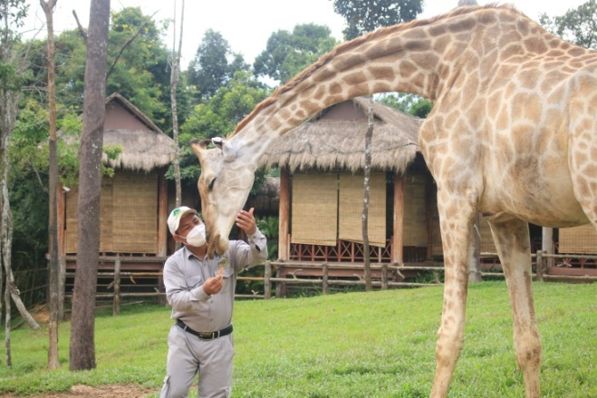 Giữa mùa giãn cách, bên cạnh việc đảm bảo nguồn thức ăn, điều kiện phòng dịch sao cho mỗi cá thể đều khỏe mạnh nhất có thể, các nhân viên chăm sóc và những người bạn hoang dã có thêm thời gian để quấn quýt, bày tỏ tình cảm với nhau. Cứ sau mỗi bữa ăn, hễ thấy nhân viên vườn thú còn thong thả ở gần đó, những cô nàng chân dài hươu cao cổ lại sà đến dụi đầu, cọ má để… xin thêm miếng snack cà rốt, chuối chín… Tê giác con thích nhất được nằm dài cho người chăm sóc gãi bụng, vểnh tai nghe ngóng rồi lại phấn khích vùng dậy chạy theo đàn đùa giỡn.