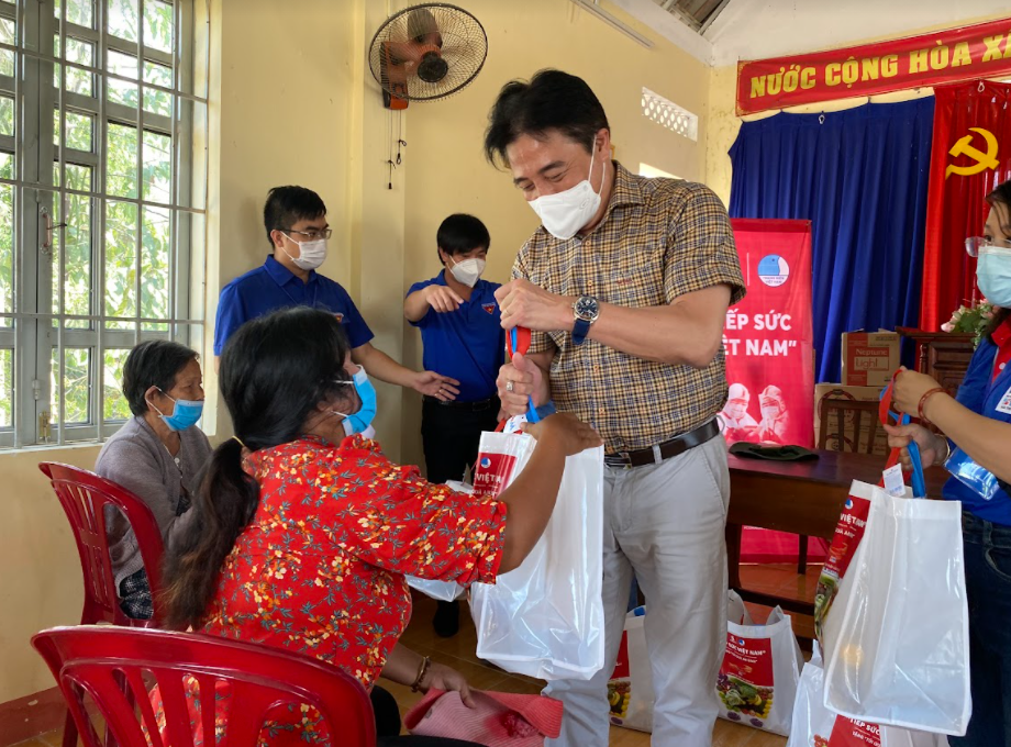 Lãnh đạo tỉnh Khánh Hòa cùng các tình nguyện viên Bia Sài Gòn - Khánh Hòa, Hội LHTNVN tỉnh trao túi an sinh cho các hộ gia đình gặp khó khăn và đồng bào dân tộc thiểu số.