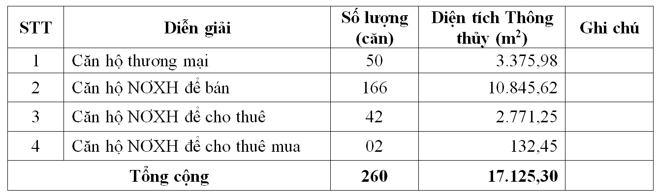 Tổng diện tích sàn nhà ở (Sàn sử dụng - Thông thủy): 17.125,30 m².