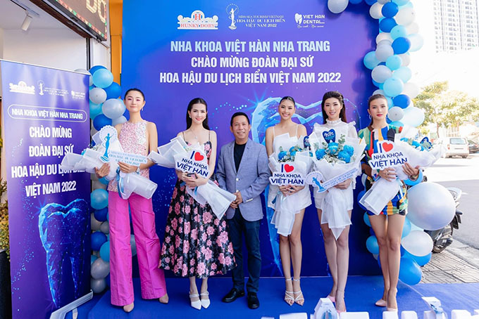 Đoàn gồm: ông Huỳnh Đức Hòa - Trưởng Ban tổ chức cuộc thi và Đoàn đại sứ Hoa Hậu Du lịch Biển 2022 gồm: Ms. Phan Thị Mơ (Hoa Hậu Đại sứ Du lịch 2018), Ms. Đào Thị Hà (Top 5 Hoa hậu Hoàn Vũ Việt Nam 2019), Siêu mẫu Trà My (Á Quân Việt Nam Next Top Model 2011), Ms. Huỳnh Thị Tường Vy (Hoa hậu Du lịch Thế giới được yêu thích nhất 2019), Diễn viên Kim Tuyến (Khách mời danh dự cuộc thi). Tại đây, đoàn đã được các bác sĩ tốt nghiệp chuyên khoa Răng Hàm Mặt tại các trường đại học danh tiếng trong và ngoài nước, giàu kinh nghiệm tại Nha khoa Việt Hàn tư vấn các giải pháp về chăm sóc răng miệng như: Tẩy trắng răng, mặt dán sứ Veneer, bọc răng sứ, niềng răng thẩm mỹ, trồng răng Implant, vệ sinh răng miệng... và có những trải nghiệm một số dịch vụ chăm sóc sức khoẻ răng miệng miễn phí tại Nha khoa Việt Hàn.