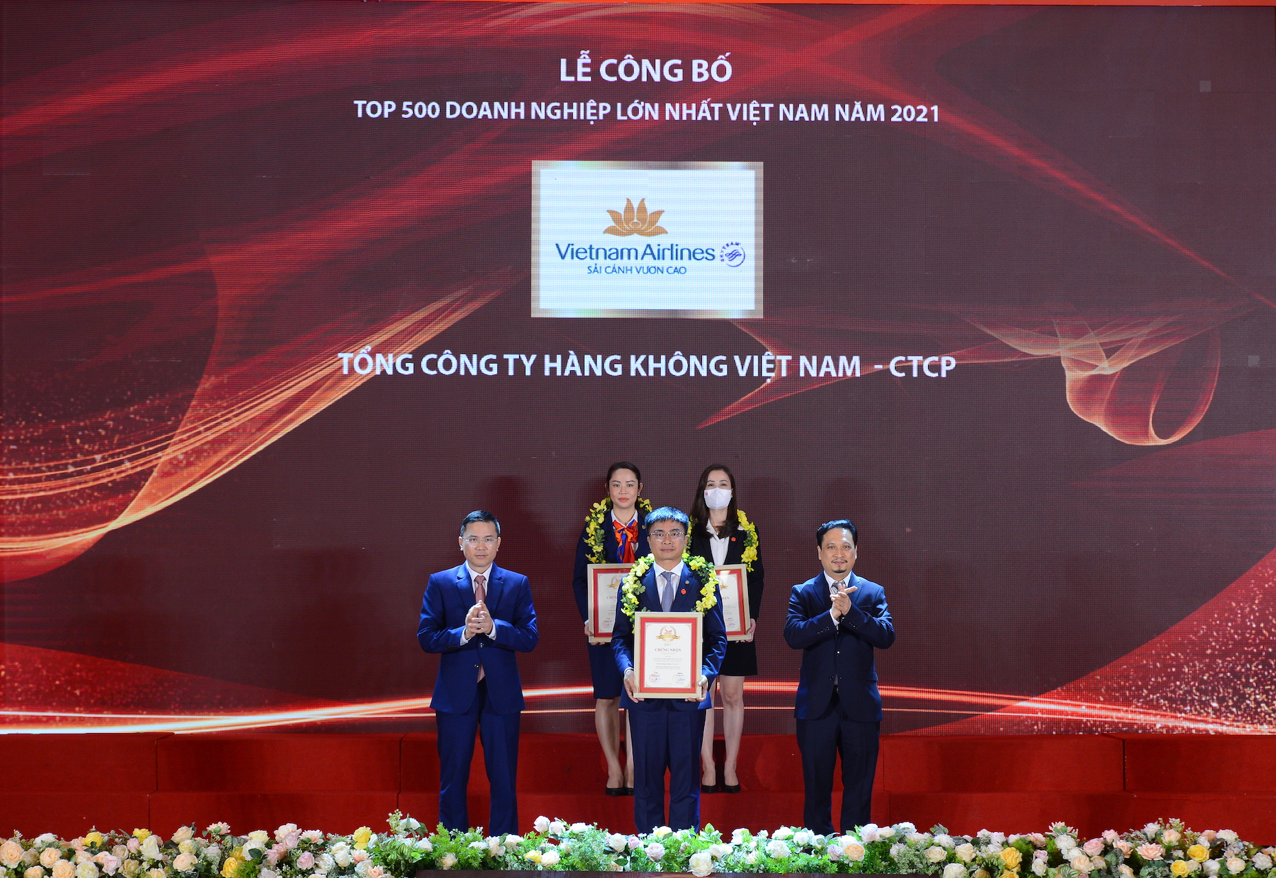 VNA đã được vinh danh trong bảng xếp hạng Top 500 doanh nghiệp lớn nhất Việt Nam năm 2021 (VNA đứng thứ 26) do Công ty Cổ phần Báo cáo Đánh giá Việt Nam (Vietnam Report) phối hợp cùng Báo VietnamNet công bố.