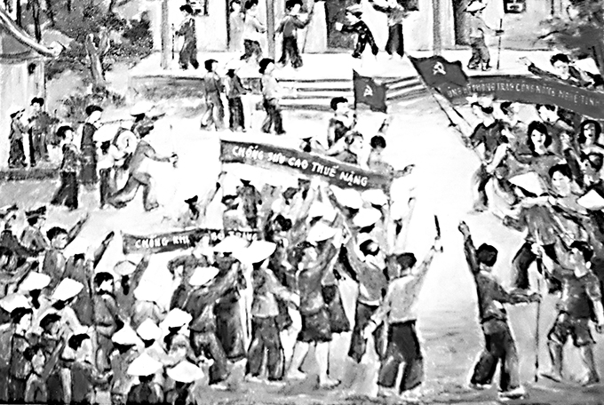 Tranh vẽ Cuộc biểu tình ngày 16-7 tại huyện Tân Định.