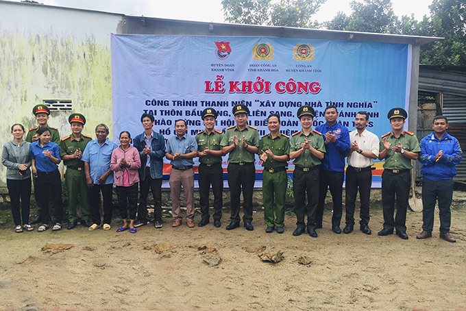 Đoàn Thanh niên Công an tỉnh và huyện Khánh Vĩnh xây nhà tình nghĩa cho người dân địa phương. |