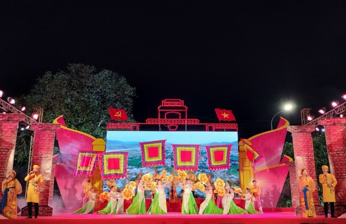 Tối cùng ngày, huyện tổ chức chương trình nghệ thuật biểu diễn với hơn 500 đại biểu tham gia, trước khi tiếp sóng chương trình lễ kỷ niệm của tỉnh.
