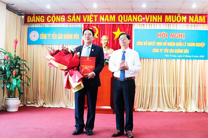 Chiều 8-6, ông Nguyễn Tấn Tuân - Phó Bí thư Tỉnh ủy, Chủ tịch UBND tỉnh trao quyết định bổ nhiệm ông Nguyễn Anh Hùng - Tổng Giám đốc Công ty TNHH Nhà nước một thành viên Yến sào Khánh Hòa (Công ty Yến sào Khánh Hòa), giữ chức Chủ tịch Hội đồng thành viên Công ty Yến sào Khánh Hòa từ ngày 10-6-2020 cho đến khi đủ tuổi nghỉ hưu. Đồng thời, ông trao quyết định bổ nhiệm ông Nguyễn Thanh Hải - Giám đốc Nhà máy Thực phẩm cao cấp Sanest Food giữ chức Thành viên Hội đồng thành viên Công ty Yến sào Khánh Hòa thời hạn 5 năm, kể từ ngày 10-6-2020.