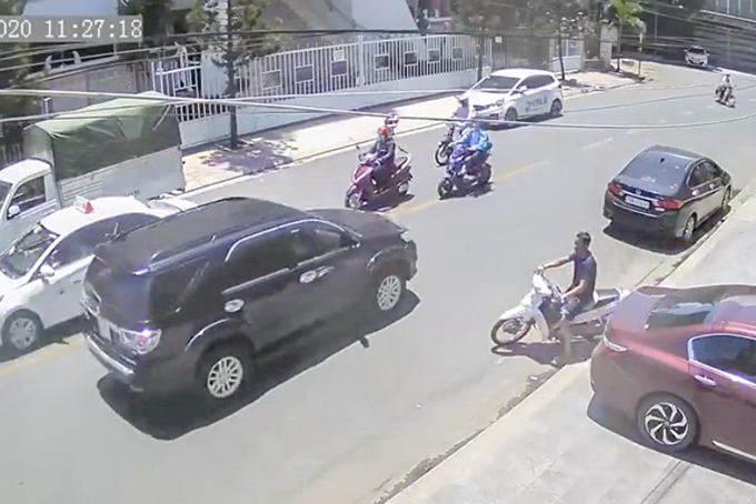 Camera ghi lại hình ảnh nghi phạm đánh cắp xe Sirius màu trắng trên đường Ngô Gia Tự. |