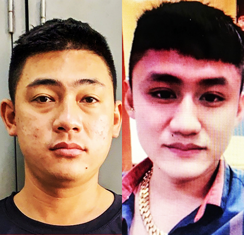 Nguyễn Văn Huy (bên trái) và Trần Anh Tuấn tại cơ quan công an. |