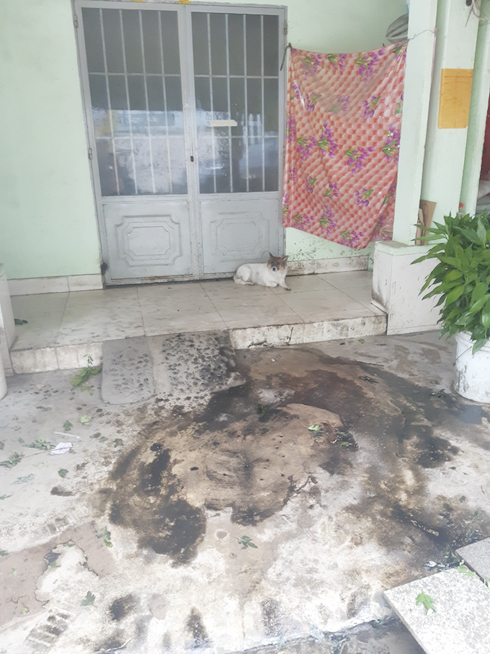 Hiện trường nhà bà L. bị tạt chất bẩn. |