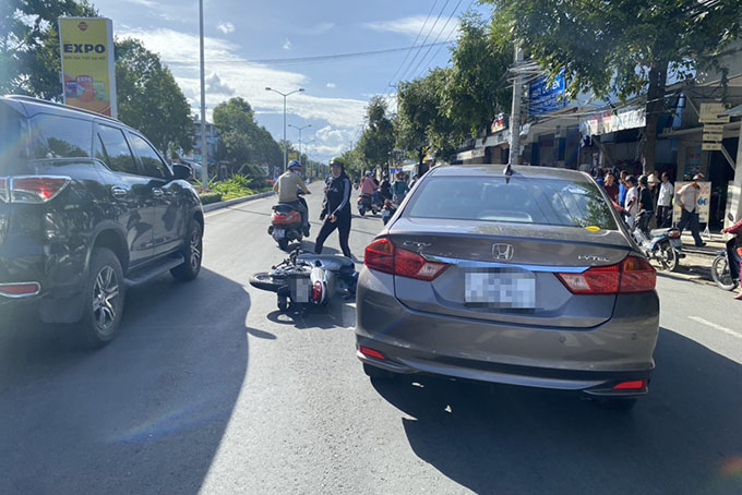Vào khoảng 14 giờ 30 ngày 14-11, tại KM5, đường 23-10, xã Vĩnh Thạnh, TP. Nha Trang xảy ra va chạm giữa xe ô tô và 2 xe máy làm 1 người bị thương.