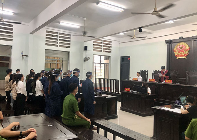 Trong đó, 18 bị cáo bị tuyên phạt về tội tổ chức đánh bạc gồm: Le AiPing (sinh năm - SN 1974): 6 năm 6 tháng tù; Tang Kun (SN 1976): 5 năm 6 tháng tù. 3 bị cáo Cheng Xing Xing (SN 1991), Wang Bo (SN 1994) và Duang Ya Dong (SN 1989) cùng mức 5 năm tù. 2 bị cáo Võ Hoài Lý (SN 1994) và Lê Thị Ánh Đô (SN 1995) cùng mức 2 năm 6 tháng tù. 9 bị cáo: Lê Nhật Linh (SN 1999), Trần Thị Phước Hòa (SN 2000), Hồ Thị Mỹ Luy (SN 2000), Lê Thị Thanh Truyền (SN 1999), Trương Vân Anh (SN 2000), Lê Mai Ánh Thiên (SN 1996), Nguyễn Thị Bích Thuận (SN 1997), Huỳnh Văn Toản (SN 1998) và Nguyễn Thị Thảo (SN 1990) cùng mức 2 năm 3 tháng tù. 2 bị cáo Nguyễn Hoài Mỹ (SN 2000) và Nguyễn Thị Oanh (SN 1994) cùng mức 2 năm tù.