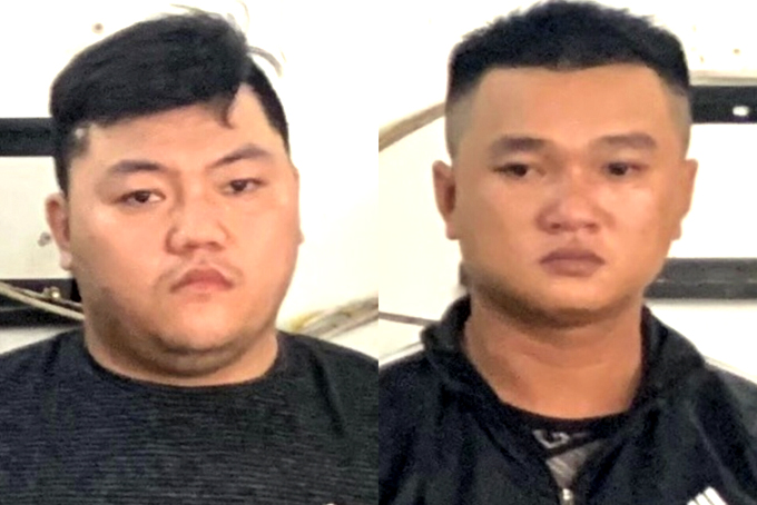 Các đối tượng (từ phải qua): Trần Nguyên Tuấn, Nguyễn Thắng tại cơ quan điều tra. |