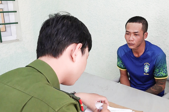 Đối tượng Nguyễn Đức Phi Long tại cơ quan công an. |