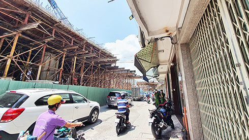 Trưa 13-3, Công an phường Ngọc Hiệp, TP. Nha Trang đã có mặt tại hiện trường để tiến hành điều tra vụ thanh sắt từ công trình thi công cầu vượt thuộc dự án nút giao thông Ngọc Hội (TP. Nha Trang) rơi trúng 2 người đi đường.