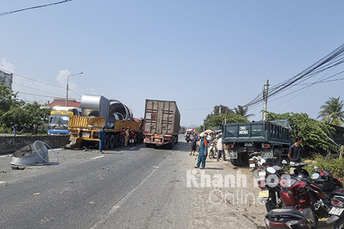 Theo Phòng cảnh sát giao thông Công an tỉnh Khánh Hòa, chiều cùng ngày, tại Quốc lộ 1, thôn Lạc Ninh, xã Ninh Thọ, thị xã Ninh Hòa xảy ra vụ tai nạn giao thông giữa xe ô tô đầu kéo biển số 92H-00001, rơ moóc 92R-01051 do tài xế Nguyễn Ngọc Vũ (sinh 1991, trú huyện Hưng Nguyên, Thái Bình) điều khiển, trên xe có phụ xe là ông Nguyễn Nhất Sinh (sinh năm 1980, trú huyện Yên Khánh, Ninh Bình) lưu thông theo hướng Nam - Bắc, khi đến địa điểm trên đã va vào phần rơ moóc của xe ô tô đầu kéo 79H - 01145 kéo mooc 79R-00588 do Trần Thanh Hoài (sinh năm 1978, trú khu phố 1, thị trấn Diên Khánh, Khánh Hòa) đang lưu thông cùng chiều phía trước. Sau va chạm, xe ô tô đầu kéo 92H-00001 mất lái, chuyển hướng qua phải, va vào một xe ô tô tải nhỏ biển số 79H-20261 đang đỗ bên lề đường và làm cho ô tô tải bị hỏng phần đầu, bên trái. Sau đó, xe ô tô đầu kéo 92H-00001 tiếp tục lao vào lề đường và đâm vào một nhà dân và 1 mái tôn nhà bên cạnh.