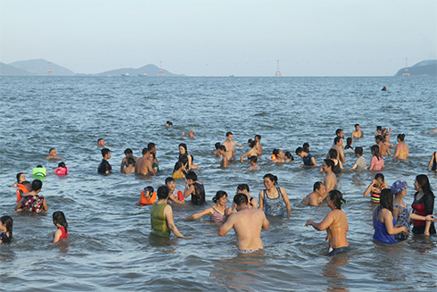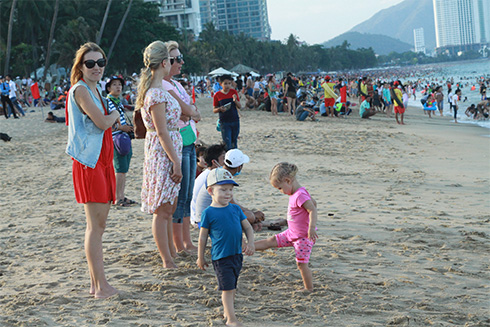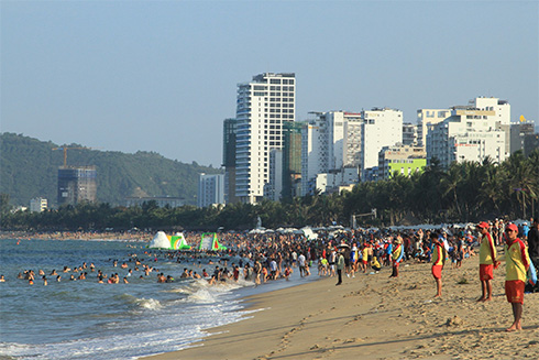 Trong 4 ngày nghỉ lễ 30-4 và 1-5, vào các buổi chiều, bãi biển Nha Trang luôn trong tình trạng đông kín người dân và du khách ra tắm biển hoặc ngắm biển. Nắm bắt trước tình hình trên, lực lượng chức năng của thành phố đã thực hiện việc cắm phao mốc giới hạn khu vực mặt nước, đồng thời bố trí người thường xuyên túc trực để kịp thời xử lý các tình huống xảy ra.