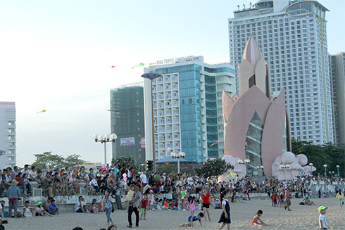 Bãi biển Nha Trang đông kín người dân và du khách vào mỗi buổi chiều.