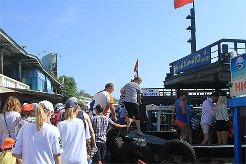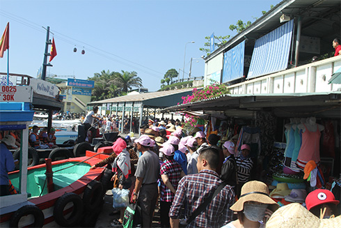 Du khách tại Bến tàu du lịch Cầu Đá để đi tham quan vịnh Nha Trang.