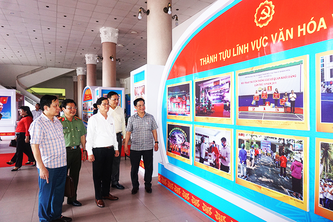 Chiều 9-10, các ông: Nguyễn Tấn Tuân - Phó Bí thư Tỉnh ủy, Chủ tịch UBND tỉnh; Hà Quốc Trị - Phó Bí thư Tỉnh ủy cùng các vị trong Ban Thường vụ Tỉnh ủy kiểm tra khu vực triển lãm ảnh chào mừng Đại hội Đảng bộ tỉnh lần thứ XVIII. |
