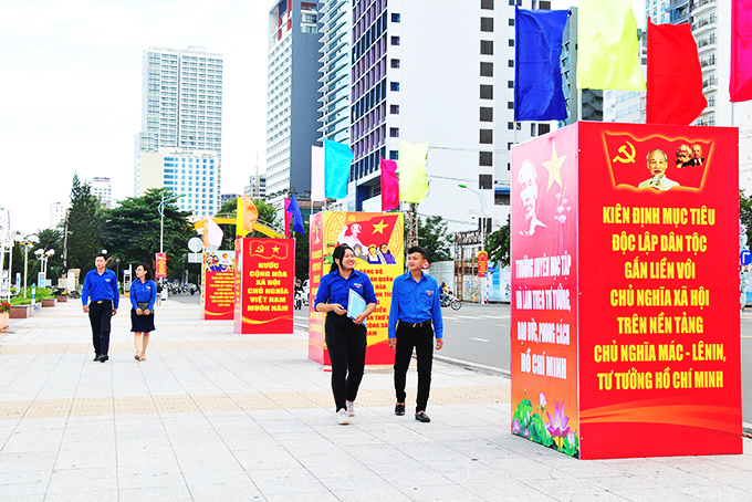 Khu vực Quảng trường 2-4 được trang hoàng rực rỡ chào mừng Đại hội Đảng bộ tỉnh lần thứ XVIII. |