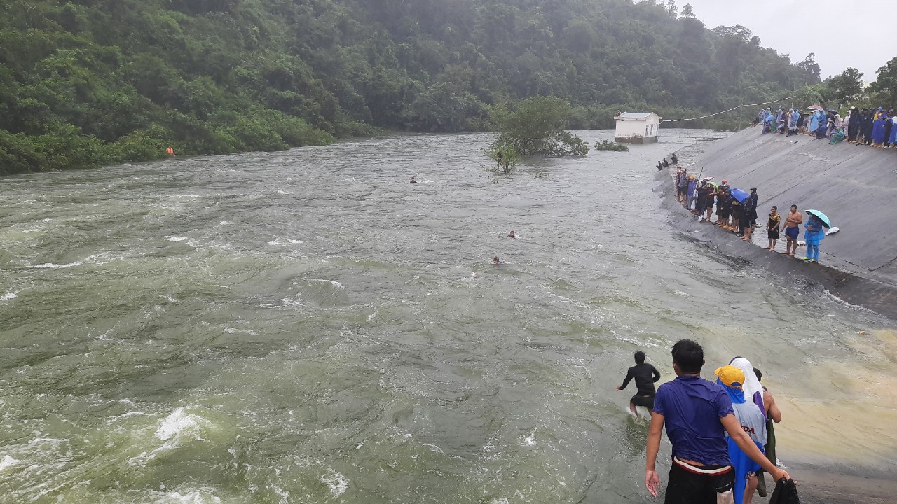 Mưa lớn suốt hai ngày qua khiến mực nước hồ chứa nước Đá Bàn (thị xã Ninh Hòa, Khánh Hòa) dâng cao và hồ bắt đầu xả lũ từ chiều 28-11. Bất chấp nguy hiểm từ sáng 29-11, hàng chục người dân đã đưa thuyền, ghe và dụng cụ lao xuống dòng nước lũ để bắt cá từ hồ.