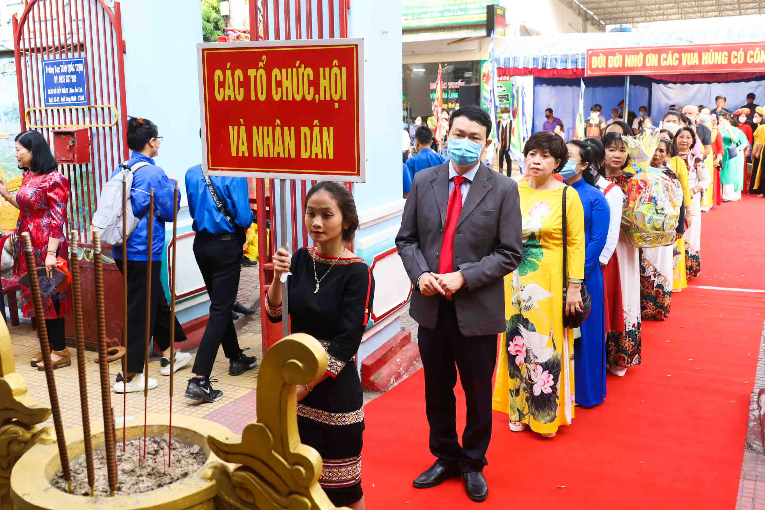 Sáng 10-4 (nhằm ngày 10-3 Âm lịch), tại di tích Đền Hùng Vương (số 173 Ngô Gia Tự, TP.Nha Trang), diễn ra lễ dâng hương tưởng nhớ các Vua Hùng nhân ngày Giỗ Tổ Hùng Vương năm 2022. Đến dự, có các ông: Nguyễn Khắc Toàn - Phó Bí thư Thường trực Tỉnh ủy, Chủ tịch HĐND tỉnh Khánh Hòa; Nguyễn Tấn Tuân - Phó Bí thư Tỉnh ủy, Chủ tịch UBND tỉnh Khánh Hòa; Trần Ngọc Thanh - Trưởng Ban Dân vận Tỉnh ủy, Chủ tịch Ủy ban MTTQ Việt Nam tỉnh Khánh Hòa; Hồ Văn Mừng - Ủy viên dự khuyết Trung ương Đảng, Bí thư Thành ủy Nha Trang; Đinh Văn Thiệu - Phó Chủ tịch UBND tỉnh; cùng các vị trong Ban Thường vụ Tỉnh ủy; lãnh đạo các sở, ban, ngành, đoàn thể, địa phương trong tỉnh; các lực lượng vũ trang; các trường, viện, cơ quan Trung ương đóng trên địa bàn; đại diện Hội đồng hương tỉnh Phú Thọ, kiều bào và các tầng lớp nhân dân.