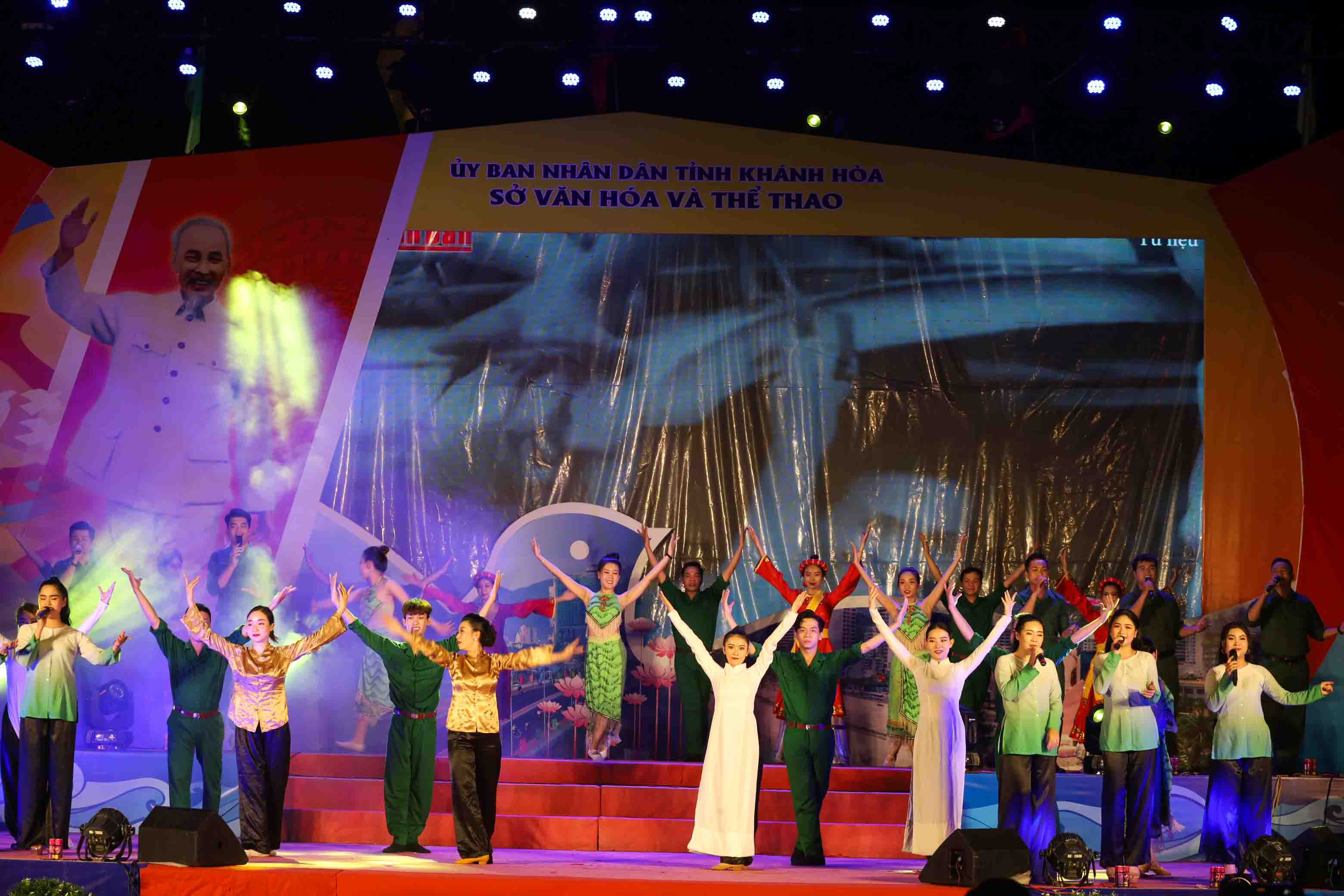 Bước vào chương trình nghệ thuật, tập thể ca sĩ, diễn viên, cộng tác viên của Đoàn ca múa nhạc Hải Đăng đã mang lại cho khán giả bầu không khí về lịch sử hào hùng của dân tộc Việt Nam; về niềm tin yêu đối với Đảng, Bác Hồ kính yêu; lòng tri ân và tự hào về các thế hệ cha anh với ý chí kiên cường, anh dũng hy sinh vì độc lập, tự do của Tổ quốc… Thông qua các tiết mục ca, múa, nhạc: Hát mừng Nha Trang giải phóng; Tiếng đàn Ta lư; Lá đỏ; Cô gái Sài Gòn đi tải đạn; Mỗi bước ta đi; Sài Gòn quật khởi; Nắng ấm về trên Tổ Quốc; Bài ca không quên; Tổ quốc nhìn từ biển; Bác đang cùng chúng cháu hành quân; Bài ca thống nhất; Khánh Hòa ngày mới; Đất nước trọn niềm vui… người dân và du khách đã có được khoảng thời gian thưởng thức nghệ thuật ý nghĩa.