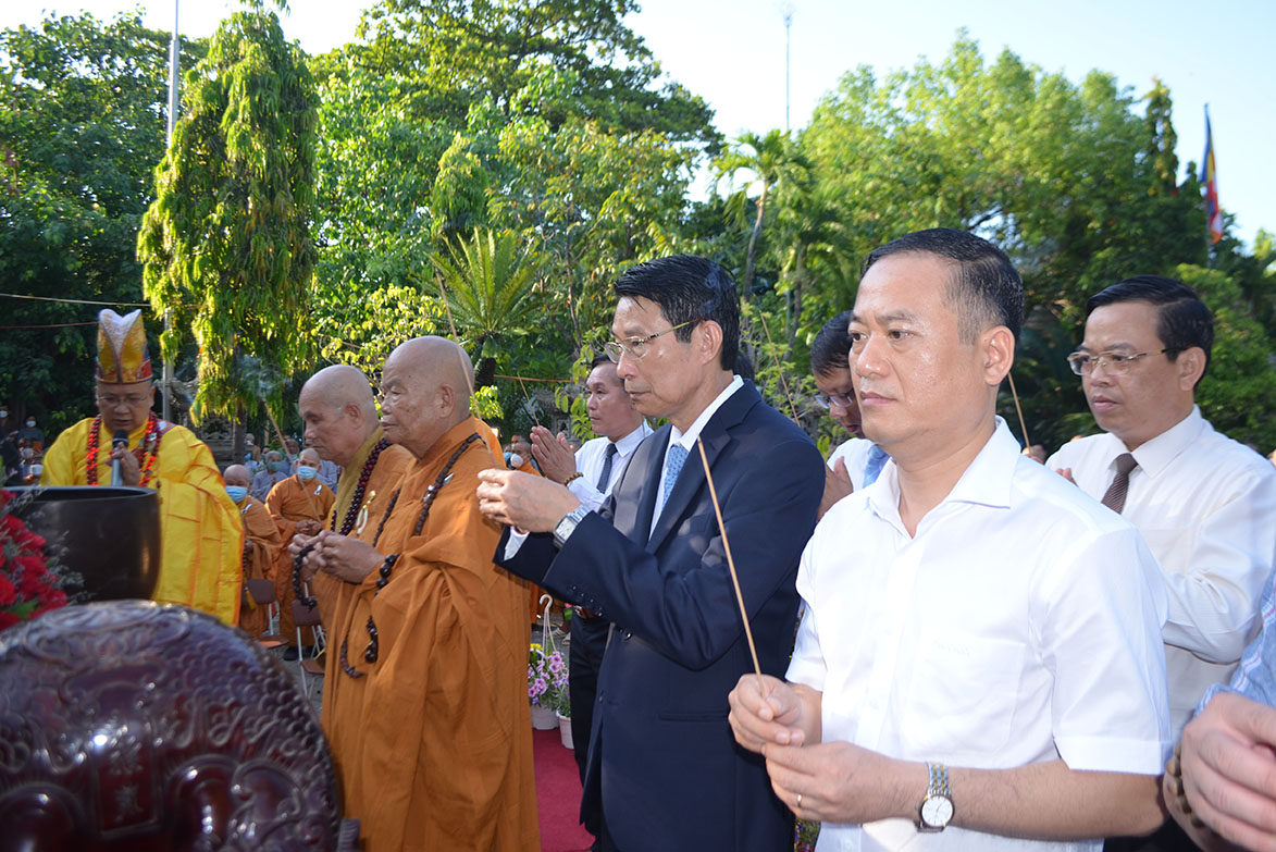 Phát biểu tại buổi lễ, ông Đinh Văn Thiệu biểu dương những đóng góp to lớn của đồng bào Phật giáo tỉnh Khánh Hòa trong những năm qua như: Trùng tu, xây dựng mới nhiều ngôi chùa khang trang, đáp ứng nhu cầu tu học của bà con phật tử, giáo dục tăng, ni sinh; hoạt động hoằnh pháp, nghi lễ, hướng dẫn nam nữ phật tử được duy trì ổn định ở các tự viện đáp ứng nhu cầu tín ngưỡng tâm linh của bà con, phật tử ở các địa phương; cử sư tăng tình nguyện tham gia công tác phật sự tại các chùa thuộc huyện Trường Sa, đáp ứng nhu cầu sinh hoạt phật sự cho bà con tín đồ nơi biên giới, hải đảo; với phương châm “Đạo pháp, Dân tộc và Xã hội chủ nghĩa” Giáo hội Phật giáo Việt Nam đã cùng với nhân dân cả nước chung tay xây dựng và bảo việ vững chắc Tổ quốc Việt Nam Xã hội chủ nghĩa; hàng năm hỗ trợ hàng tỷ đồng cùng chính quyền địa phương thực hiện các chương trình an sinh xã hội, giảm nghèo... Ông Đinh Văn Thiệu khẳng định quan điểm của Nhà nước ta về tín ngưỡng tôn giáo là nhất quán, xuyên suốt, trước sau như một, tôn trọng quyền tự do tín ngưỡng, tôn giáo của chức sắc, nhà tu hành, tín đồ theo các tôn giáo. Luật tín ngưỡng tôn giáo đã tạo hành lang pháp lý là điều kiện thuận lợi cho các tôn giáo nói chung và Phật giáo nói riêng hoạt động. Ông mong muốn, thời gian tới, Thường trực Ban Trị sự Giáo hội Phật giáo Việt Nam tỉnh Khánh Hòa làm tốt công tác chuẩn bị để đại hội Giáo hội Phật giáo Việt Nam tỉnh thành công tốt đẹp; các chức sắc, chức việc, nhà tu hành, bà con phật tử tiếp tục phát huy tinh thần đoàn kết tôn giáo, đại đoàn kết dân tộc, phát huy những giá trị đạo đức, văn hóa tôn giáo gắn với ý thức trách nhiệm người công dân tích cực hưởng ứng các phong trào thi đua yêu nước và có những đóng góp thiết thực vào sự nghiệp phát triển kinh tế - xã hội, an ninh quốc phòng của tỉnh.