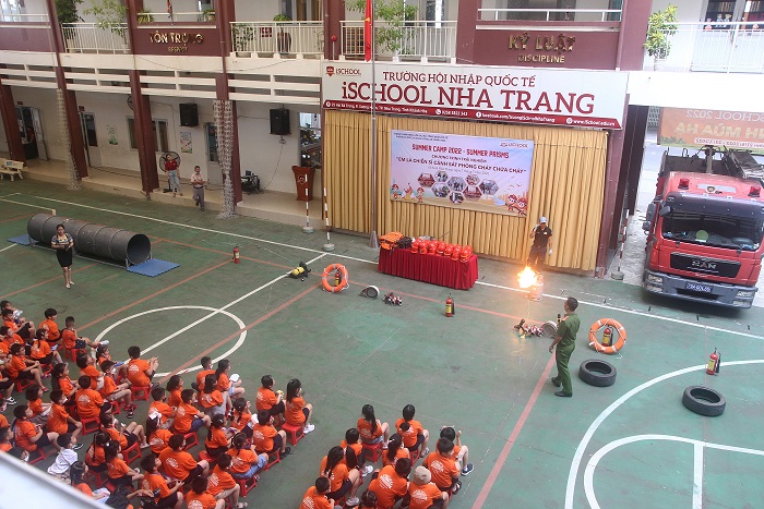 Ngày 7-7, Trường iSchool Nha Trang phối hợp với Phòng Cảnh sát Phòng cháy chữa cháy và cứu nạn, cứu hộ Công an tỉnh Khánh Hòa tổ chức chương trình trải nghiệm "Em là chiến sĩ cảnh sát phòng cháy, chữa cháy".