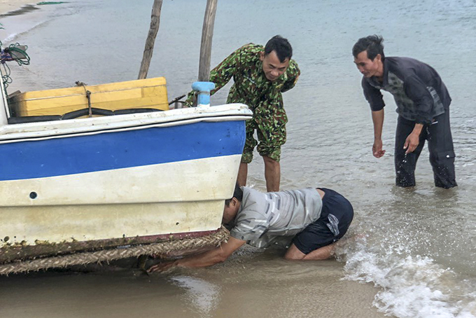 Phương tiện của người dân ven biển Ninh Phước đã được bộ đội biên phòng di dời đến nơi an toàn.
