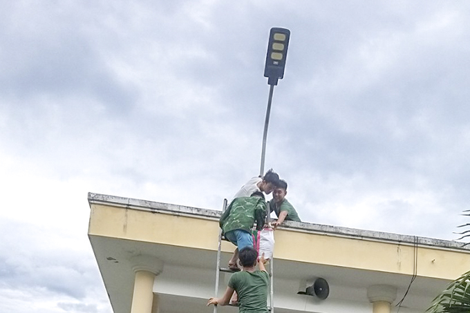 Bộ đội biên phòng giúp người dân gia cố nhà cửa trước khi bão đổ bộ.