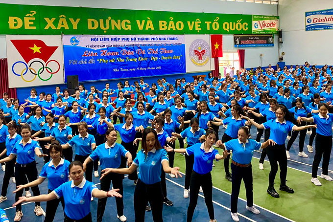 Sáng 19-10, Hội LHPN TP. Nha Trang tổ chức Liên hoan thể thao dân vũ với chủ đề “Phụ nữ Nha trang - Khoẻ, đẹp, duyên dáng”. Liên hoan với sự tham gia của các cán bộ, hội viên phụ nữ đến từ 27 xã, phường.