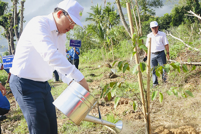 Ông Lê Hữu Hoàng - Phó Chủ tịch Thường trực UBND tỉnh trồng cây tại lễ phát động.