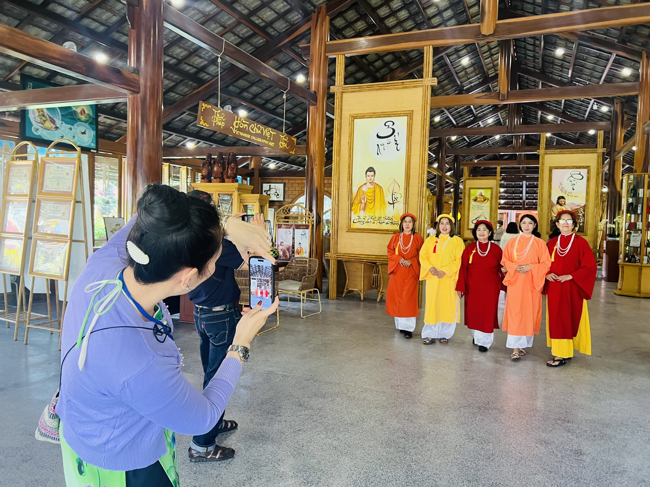 Du khách chụp ảnh check-in Làng nghề Trường Sơn.