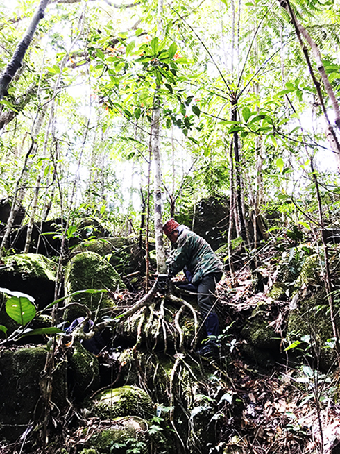 Đặt thiết bị thu thập thông tin, hình ảnh về động vật hoang dã tại Hòn Bà. |