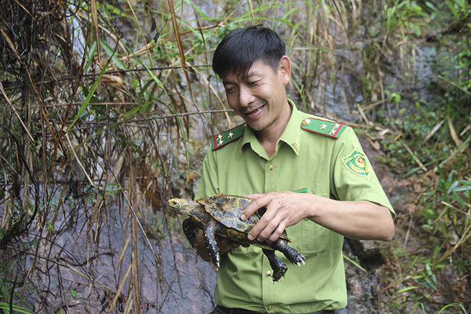 Lực lượng kiểm lâm thả các cá thể rùa về rừng |