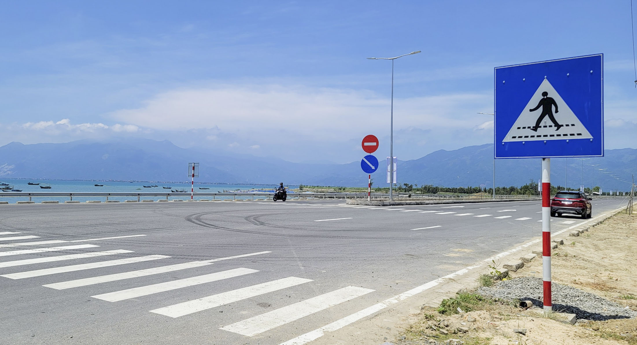 Hệ thống an toàn giao thông với các biển báo, sơn kẻ vạch đường đã được thi công hoàn thiện.