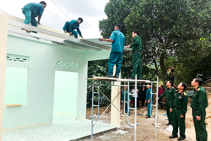 Hộ ông Tro Ly (thôn 2, xã Sơn Bình) là một trong những gia đình có hoàn cảnh khó khăn được LLVT tỉnh hỗ trợ 20 triệu đồng để sửa chữa nhà và hỗ trợ nhân lực trực tiếp thi công. Trong buổi lễ bàn giao công trình, vợ chồng ông rất vui mừng và xúc động cho biết: “Căn nhà của gia đình tôi đã bị xuống cấp từ lâu, tường bị nứt nhiều chỗ, 2 trụ phía trước cũng bị nứt gãy..., vào mùa mưa bão là lo sợ đổ sập. Hiểu được hoàn cảnh gia đình tôi, các chú bộ đội đã hỗ trợ tiền và giúp sửa nhà... nên bây giờ căn nhà đẹp đẽ và chắc chắn như mới xây”.