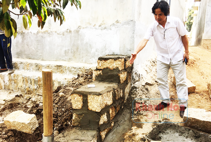 Đến nhà vợ chồng ông Mấu Hồng (thôn Sông Cạn Đông, xã Cam Thịnh Tây, TP. Cam Ranh), chúng tôi cũng được phản ánh về chất lượng công trình. Ông Mấu Hồng cho biết, khu đất xây nhà bị trũng nhưng đơn vị thi công không tôn nền lên mà để vậy làm móng, đổ trụ. Ngoài ra, tỷ lệ xi măng trộn với cát để làm vữa cũng không chuẩn nên ông sợ sẽ ảnh hưởng đến chất lượng căn nhà sau này. Vì vậy, ông Hồng đã gọi điện báo cho Hội Chữ thập đỏ (CTĐ) xã can thiệp. Tương tự, gia đình ông Mang Thấu (thôn Sông Cạn Trung) không hài lòng với đơn vị thi công nên đã yêu cầu tạm dừng, tôn nền cao lên mới được tiếp tục xây dựng.
