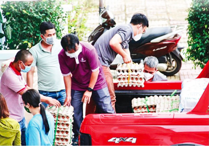 Thầy Phạm Thanh Thủy tham gia đoàn trao quà cho người dân trong những ngày dịch Covid-19 diễn biến phức tạp. |