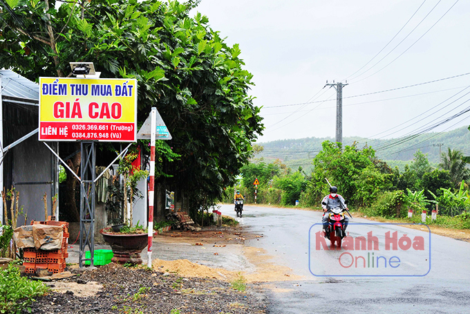 Đi dọc Quốc lộ 27C đoạn qua huyện Khánh Vĩnh hay trên Hương lộ 62 đoạn qua xã Khánh Phú, Sông Cầu, chúng tôi bắt gặp vô số tờ quảng cáo bán đất với nội dung như “Bán đất chính chủ, đường 7m xã Khánh Phú giá chỉ 680 triệu đồng, 588m2” hay “Bán đất 1.308m2 giá 390 triệu đồng”. Tại xã Khánh Phú, một “Điểm thu mua đất giá cao” với biển hiệu lớn cũng mọc lên.